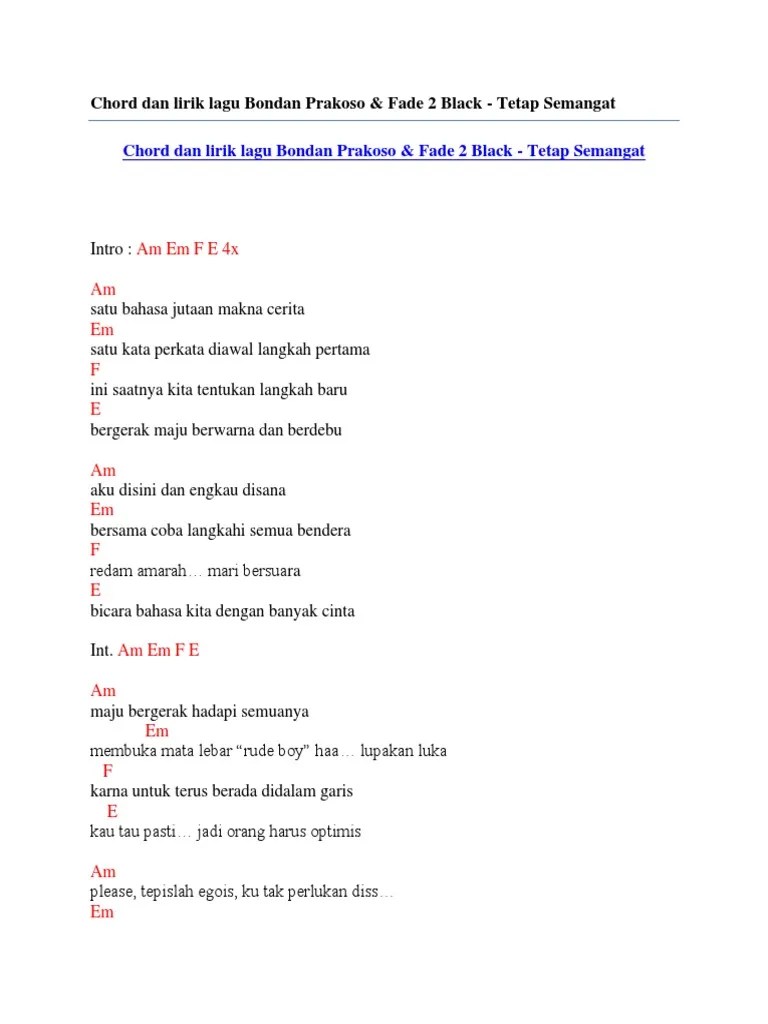 G em c d g. G yo baby kau sosok yang punyai arti. Kau puisi ketika datang sepi Download lagu mp3 & video: Lirik lagu kau puisi bondan dan unduh semua lagu mp3 dengan mudah. Koleksi lagu mp3 terbaru dan juga kord gitar lagu slowrock malaysia, nostalgia, pop sunda, dangdut, dll. Bondan prakoso feat fade 2 black bunga. Chord lagu bondan prakoso bumi ke langit (lula guerrero). Masukkan nama lagu ke kotak pencarian untuk cari lagu yang anda inginkan. Lirik dan kunci gitar bondan not with me . Kumpulan lirik dan chord bondan prakoso & fade 2 black, kunci gitar bondan lengkap dari. Layanan mobile dari situs entertainment terbesar indonesia, kapanlagi.com.